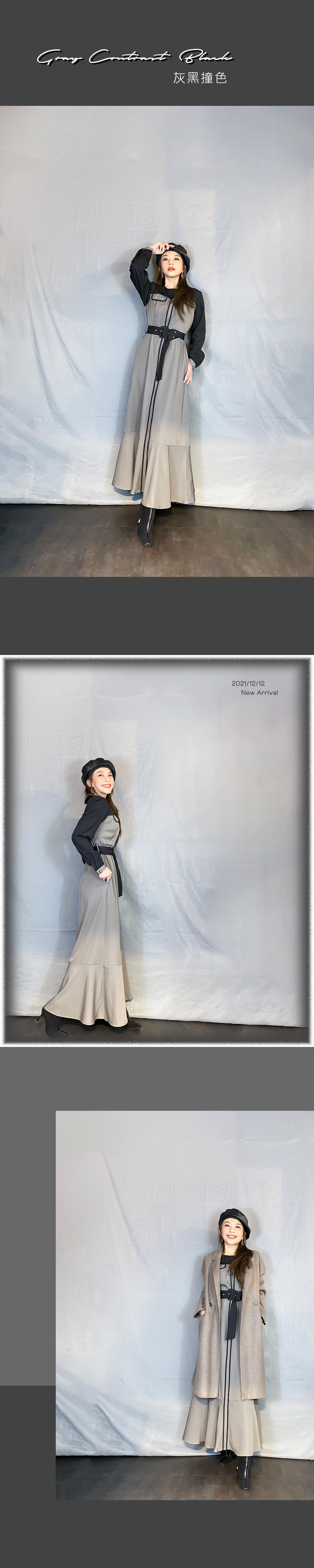 ♡ 小香風 - 莫蘭灰度配色長洋